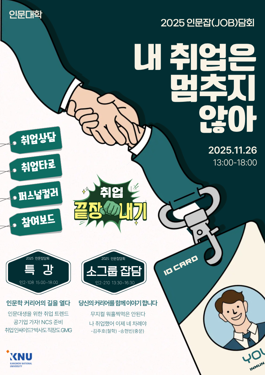 인문대학 취업행사 「인문잡(JOB)담회」개최안내-2025.11.26.(수)